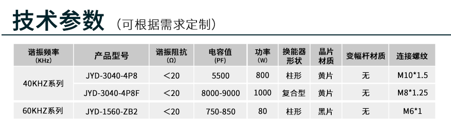 佳源達(dá)超聲波焊接換能器,輸出功率大,諧振阻抗小,轉(zhuǎn)換效率高,發(fā)熱量低,持續(xù)工作時(shí)間長(zhǎng),質(zhì)量穩(wěn)定可靠。