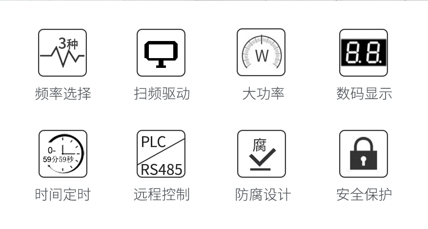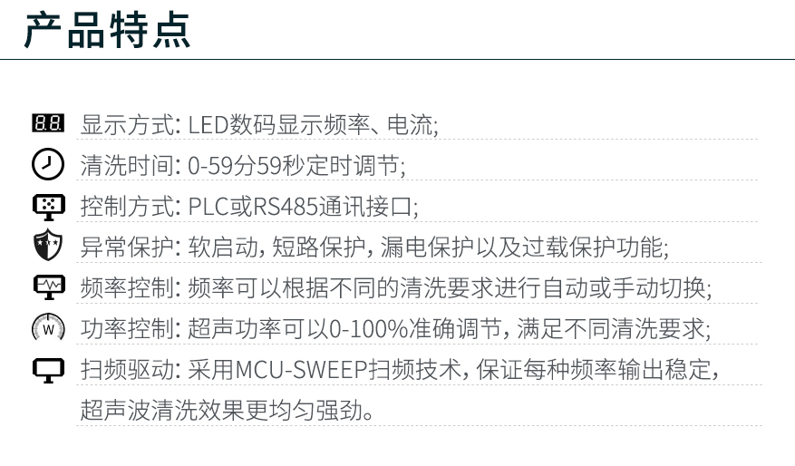 佳源達(dá)多頻超聲波發(fā)生器 ,獨(dú)特的多頻設(shè)計(jì),領(lǐng)先的MCU-SWEEP掃頻技術(shù),保證每種頻率的輸出穩(wěn)定,LED顯示電流,頻率,時(shí)間,增加RS485或PLC通訊端口,頻率自動(dòng)或手動(dòng)切換。