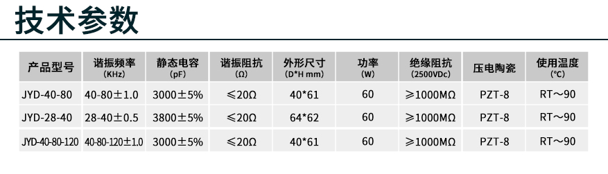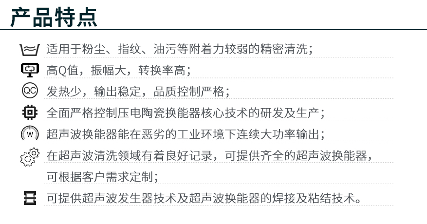 雙頻(28Khz/40Khz)、三頻(40Khz/80Khz/100Khz)、多頻超聲波清洗換能器,高Q值、振幅大、轉換頻率高、發(fā)熱少、輸出穩(wěn)定,嚴格的質量監(jiān)控。可根據客戶不同要求提供定制服務。